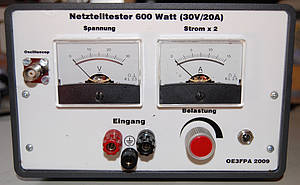Netzteiltester (Elektronische Last) 30 Volt, 20 Ampere mit Auskoplung für Oscilloscop.